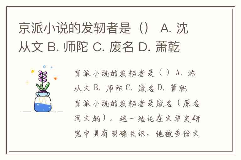 京派小说的发轫者是() A. 沈从文 B. 师陀 C. 废名 D. 萧乾