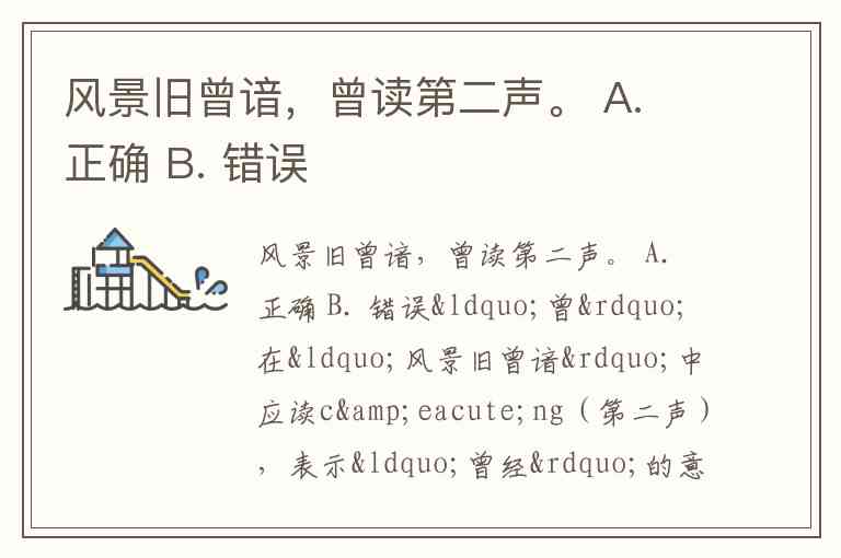 风景旧曾谙,曾读第二声。 A. 正确 B. 错误