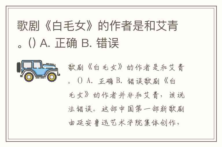 歌剧《白毛女》的作者是和艾青。() A. 正确 B. 错误