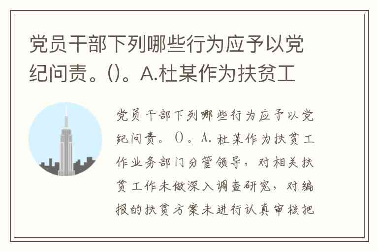 党员干部在扶贫、环保、工程推进等工作中出现不作为、慢作为、假作为等问题,均可能触发党纪问责。根据《中国共产党问责条例》第七条第十项,在教育医疗、生态环境保护、扶贫脱贫等涉及群众利益的领域不作为、乱作为、慢作为、假作为,造成恶劣影响的,应当予以问责。结合具体情形分析: