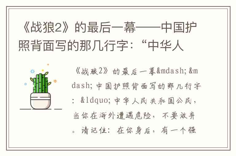 《战狼2》中护照文字体现了国家与公民利益的深刻关系。国家强大是公民安全的根本保障,而公民利益的实现也依赖于国家利益的维护。我们需结合社会主义国家利益与人民利益的关系原理分析各观点: