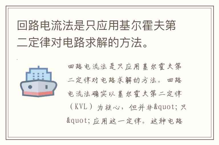 回路电流法是只应用基尔霍夫第二定律对电路求解的方法。