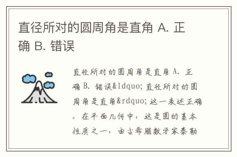 直径所对的圆周角是直角 A. 正确 B. 错误