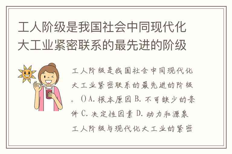 工人阶级是我国社会中同现代化大工业紧密联系的最先进的阶级。()A.根本原因 B.不可缺少的条件 C.决定性因素 D.动力和源泉