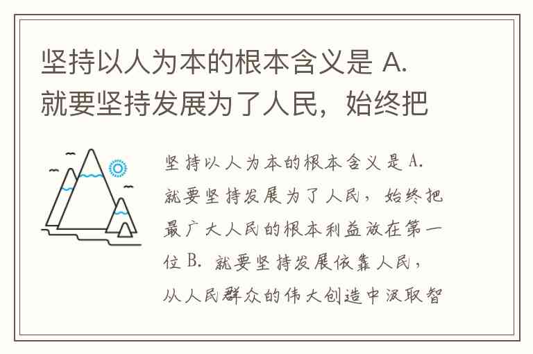 坚持以人为本的根本含义是 A. 就要坚持发展为了人民,始终把最广大人民的根本利益放在第一位 B. 就要坚持发展依靠人民,从人民群众的伟大创造中汲取智慧和力量 C. 就要坚持发展成果由人民共享,着力提高人民物质文化生活水平 D. 最终是为了实现人的全面发展
