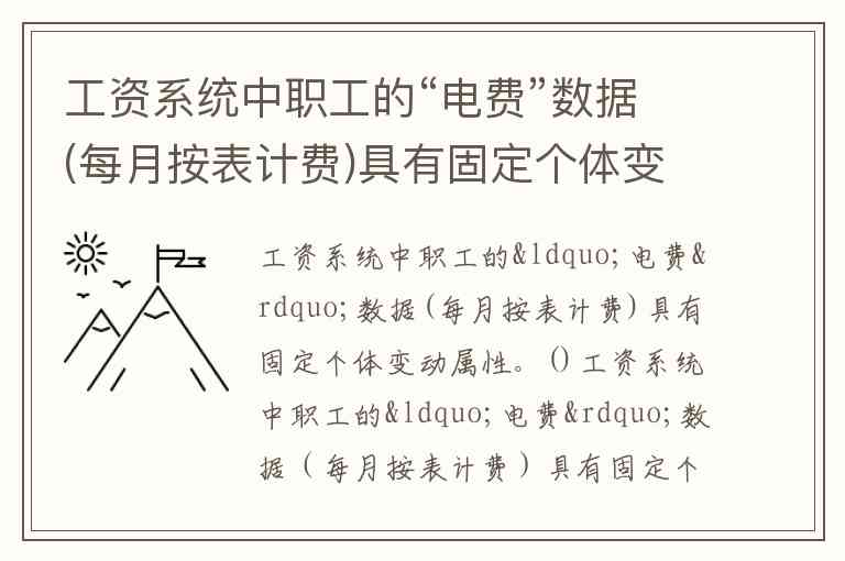 工资系统中职工的“电费”数据(每月按表计费)具有固定个体变动属性。这一属性意味着电费数据会因个体差异和时间周期而呈现规律性变化:同一职工的电费金额每月随用电量波动(如夏季空调使用增加导致电费上升),但数据关联的职工身份始终固定。