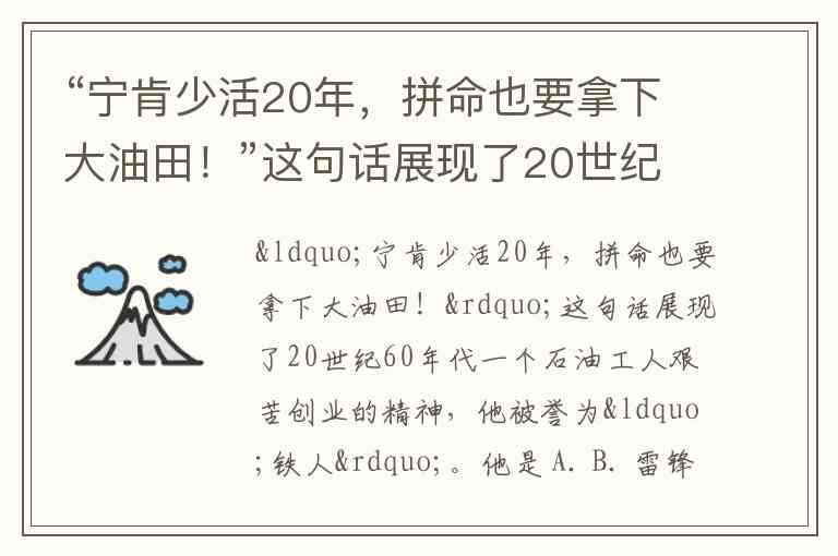 王进喜的奋斗不仅改变了国家石油工业的命运,更铸就了精神丰碑。他带领钻井队创造年进尺10万米的世界纪录,推动大庆油田在三年多时间里建成我国最大石油基地,使中国甩掉“贫油”帽子。1970年,这位47岁的“铁人”因胃癌晚期离世,但他“爱国、创业、求实、奉献”的精神已融入中华民族血脉,成为中国共产党人精神谱系的重要组成部分。如今,当我们看到大庆油田累计生产原油突破25亿吨的成就时,或许更能理解:那句“少活20年”的誓言,最终转化为了让子孙后代受益的精神能源。