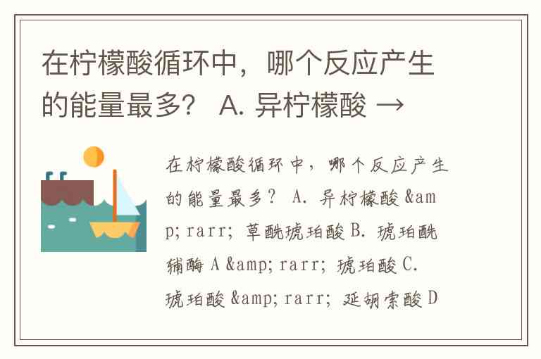 在柠檬酸循环中,哪个反应产生的能量最多? A. 异柠檬酸 → 草酰琥珀酸 B. 琥珀酰辅酶 A → 琥珀酸 C. 琥珀酸 → 延胡索酸 D. 草酰乙酸 → 柠檬酸