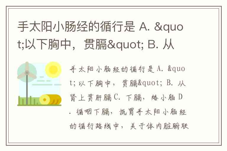 手太阳小肠经的循行是 A. "以下胸中,贯膈" B. 从肾上贯肝膈 C. 下膈,络小肠 D. 循咽下膈,抵胃