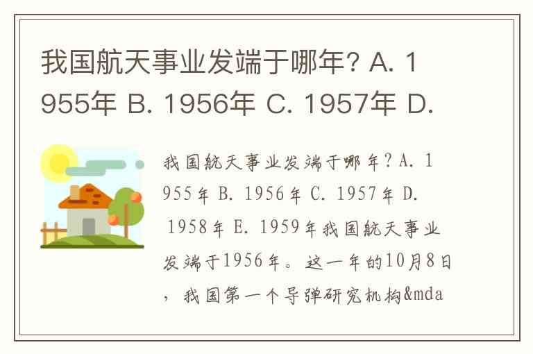 我国航天事业发端于哪年? A. 1955年 B. 1956年 C. 1957年 D. 1958年 E. 1959年