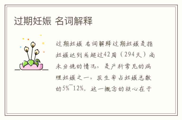 过期妊娠是指妊娠达到或超过42周(294天)尚未分娩的情况,是产科常见的病理妊娠之一,发生率占妊娠总数的5%~12%。这一概念的核心在于准确的孕龄判断——对于月经规律的女性,通常以末次月经第一天为起点计算孕周;若月经周期不规律或妊娠日期不确定,则需结合妊娠早期超声检查(最多20周)、排卵日期、早孕反应出现时间等综合校正预产期。