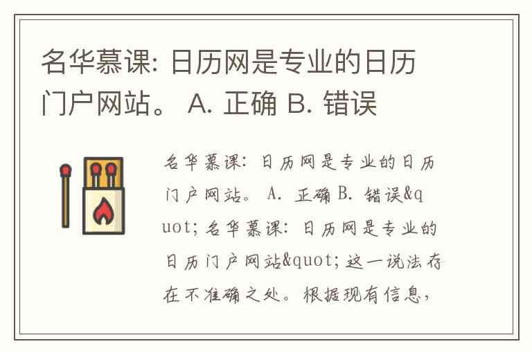 "名华慕课: 日历网是专业的日历门户网站"这一说法存在不准确之处。根据现有信息,"名华慕课"与"日历网"是两个独立概念,二者没有直接关联。