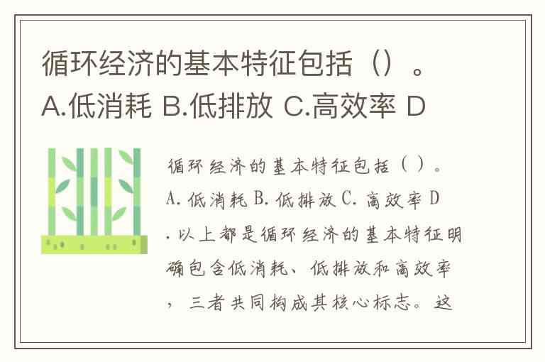 循环经济的基本特征包括()。A.低消耗 B.低排放 C.高效率 D.以上都是