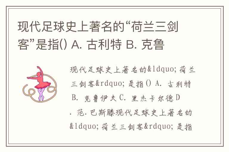现代足球史上著名的“荷兰三剑客”是指() A. 古利特 B. 克鲁伊夫 C. 里杰卡尔德 D. 范.巴斯滕