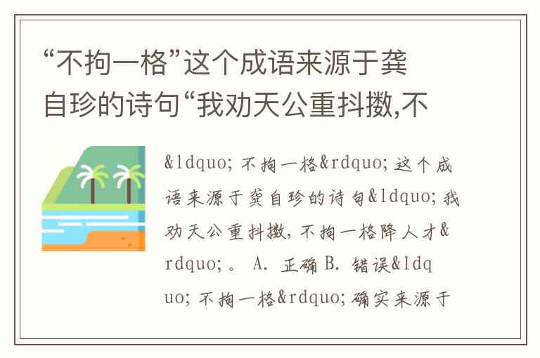 “不拘一格”这个成语来源于龚自珍的诗句“我劝天公重抖擞,不拘一格降人才”。 A. 正确 B. 错误