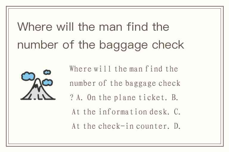 Where will the man find the number of the baggage check ? A. On the plane ticket. B. At the information desk. C. At the check-in counter. D. From the record of his flight.