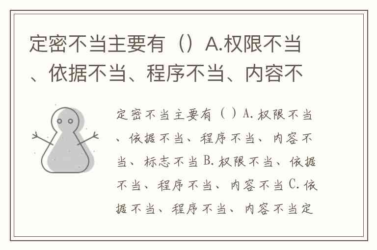 定密不当主要有()A.权限不当、依据不当、程序不当、内容不当、标志不当 B.权限不当、依据不当、程序不当、内容不当 C.依据不当、程序不当、内容不当