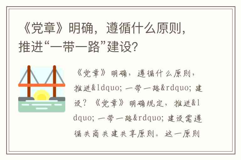 《党章》明确规定,推进“一带一路”建设需遵循共商共建共享原则。这一原则在2017年党的十九大被正式写入新修改的党章,成为中国共产党推动国际合作的核心准则之一。