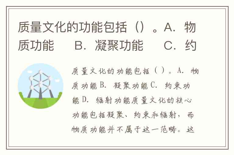 质量文化的功能包括()。A.物质功能 B.凝聚功能 C.约束功能 D.辐射功能