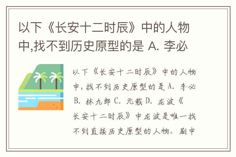 以下《长安十二时辰》中的人物中,找不到历史原型的是 A. 李必 B. 林九郎 C. 元载 D. 龙波