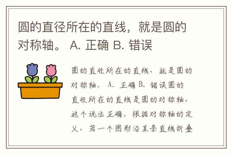 圆的直径所在的直线,就是圆的对称轴。 A. 正确 B. 错误