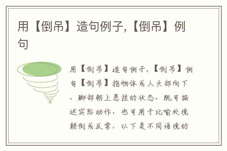 这些例子中,“倒吊”既保留了物理空间的上下颠倒含义,也延伸为逻辑或价值层面的错位,体现了汉语词汇的多义性。你还能想到哪些“倒吊”的创新用法?