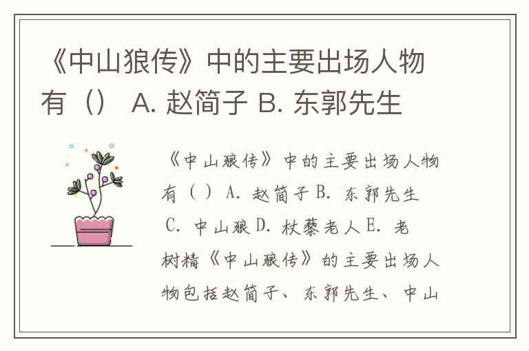 《中山狼传》中的主要出场人物有() A. 赵简子 B. 东郭先生 C. 中山狼 D. 杖藜老人 E. 老树精