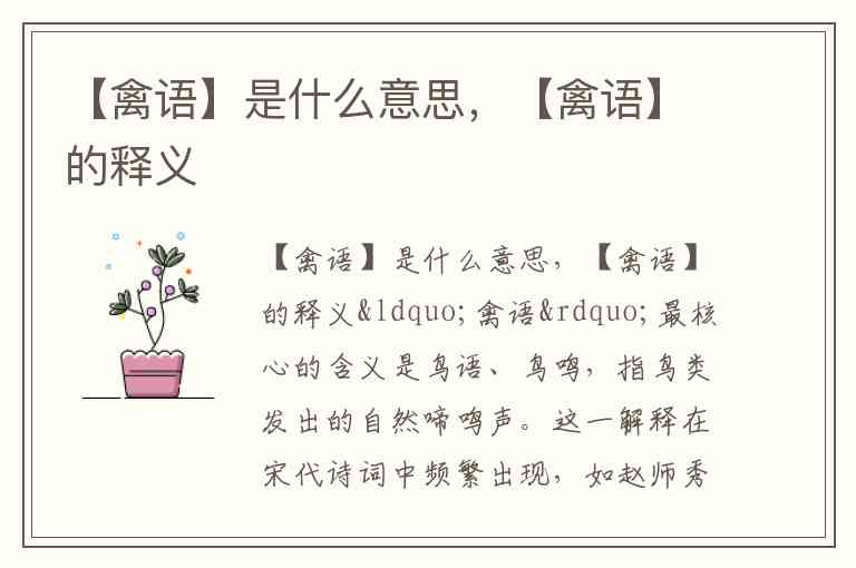 综上,理解“禽语”需区分三层:自然声响(鸟鸣)、文学体裁(禽言诗)、文化符号(鸟类意象)。其中前两者为核心,后者需结合具体语境。若你在古诗中读到“禽语”,大概率是描绘鸟鸣;若看到《禽言》诗题,则是指模拟鸟声的特殊诗体。