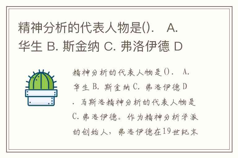 精神分析的代表人物是(). A. 华生 B. 斯金纳 C. 弗洛伊德 D. 马斯洛