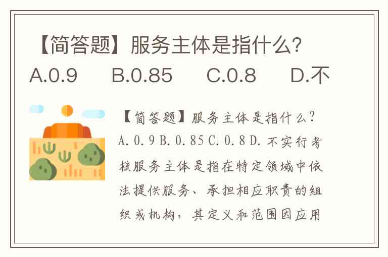 【简答题】服务主体是指什么?A.0.9 B.0.85 C.0.8 D.不实行考核