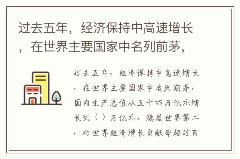 过去五年,经济保持中高速增长,在世界主要国家中名列前茅,国内生产总值从五十四万亿元增长到()万亿元,稳居世界第二,对世界经济增长贡献率超过百分之三十。A.六十 B.七十 C.八十 D.九十