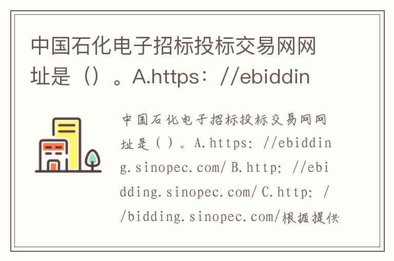中国石化电子招标投标交易网网址是()。A.https://ebidding.sinopec.com/ B.http://ebidding.sinopec.com/ C.http://bidding.sinopec.com/