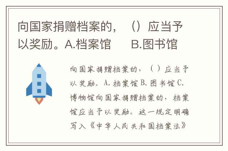 向国家捐赠档案的,()应当予以奖励。A.档案馆 B.图书馆 C.博物馆