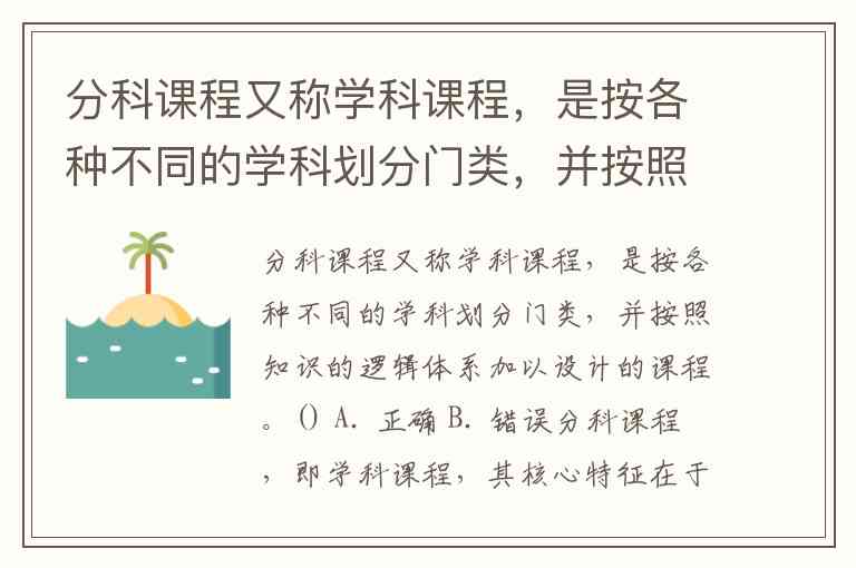 这一概念在现代教育体系中应用广泛,如数学、物理等学科的设置均遵循知识逻辑结构,体现了分科课程的典型特征。理解这一课程类型,有助于把握不同课程设计理念对教学实践的影响。