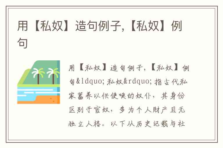 “私奴”指古代私家蓄养以供使唤的奴仆,其身份区别于官奴,多为个人财产且无独立人格。以下从历史记载与社会现象两方面举例说明:
