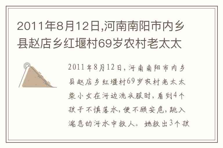 “最美奶奶”柴小女的事迹展现了人性的光辉。面对落水儿童,她不顾个人安危挺身而出,用生命诠释了高尚品格,这一行为应从积极价值角度正确解读。