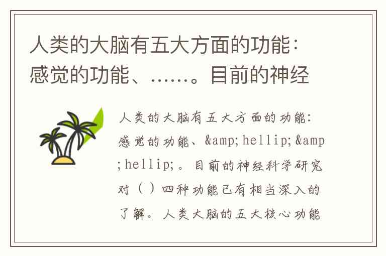 人类的大脑有五大方面的功能:感觉的功能、……。目前的神经科学研究对()四种功能已有相当深入的了解。