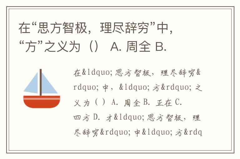 在“思方智极,理尽辞穷”中,“方”之义为() A. 周全 B. 正在 C. 四方 D. 才