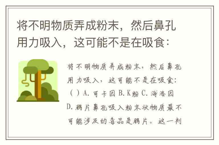 将不明物质弄成粉末,然后鼻孔用力吸入,这可能不是在吸食:()A.可卡因 B.K粉 C.海洛因 D.鸦片