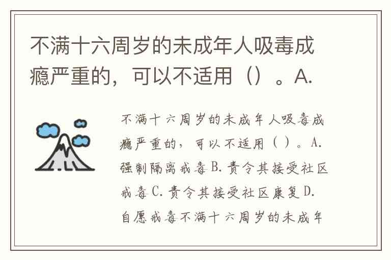 不满十六周岁的未成年人吸毒成瘾严重的,可以不适用()。A.强制隔离戒毒 B.责令其接受社区戒毒 C.责令其接受社区康复 D.自愿戒毒