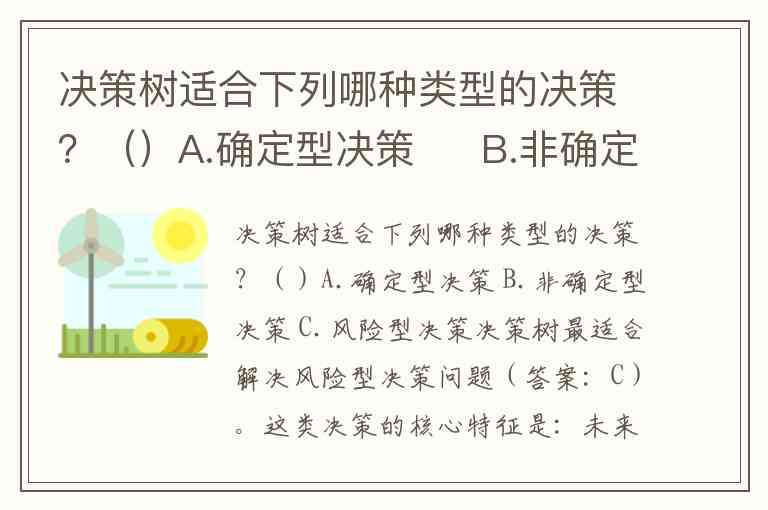 决策树适合下列哪种类型的决策?()A.确定型决策 B.非确定型决策 C.风险型决策