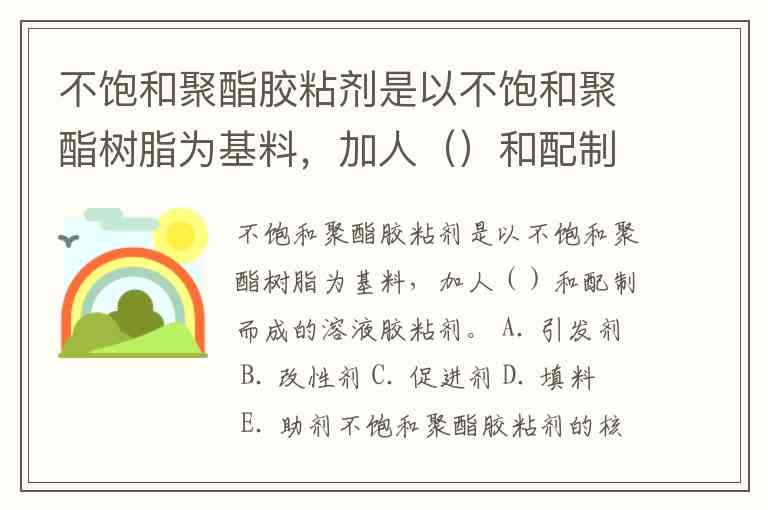 不饱和聚酯胶粘剂是以不饱和聚酯树脂为基料,加人()和配制而成的溶液胶粘剂。 A. 引发剂 B. 改性剂 C. 促进剂 D. 填料 E. 助剂