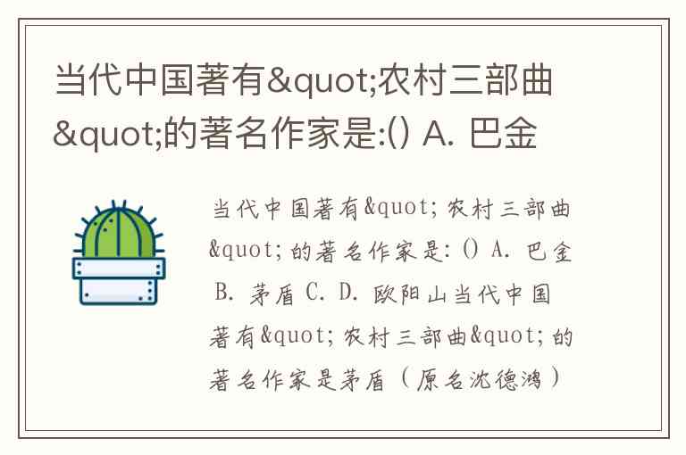 当代中国著有"农村三部曲"的著名作家是:() A. 巴金 B. 茅盾 C. D. 欧阳山