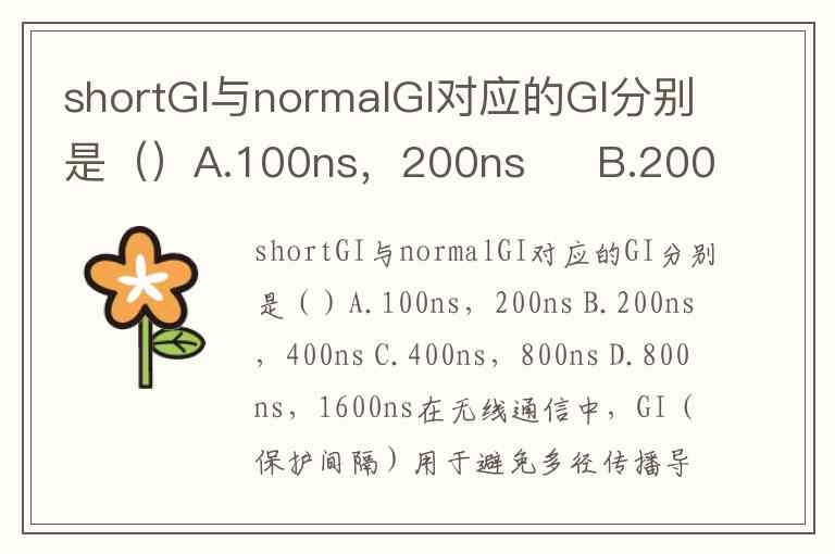 shortGI与normalGI对应的GI分别是()A.100ns,200ns B.200ns,400ns C.400ns,800ns D.800ns,1600ns