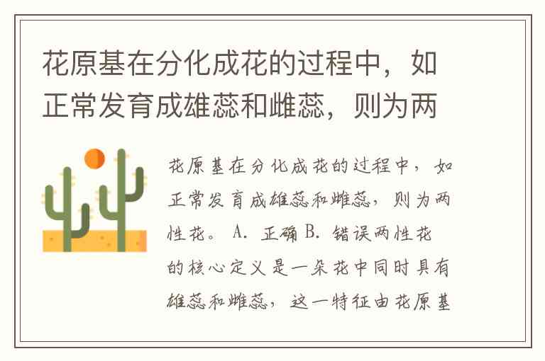 花原基在分化成花的过程中,如正常发育成雄蕊和雌蕊,则为两性花。 A. 正确 B. 错误