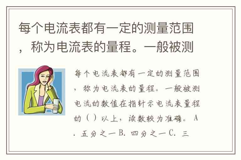 每个电流表都有一定的测量范围,称为电流表的量程。一般被测电流的数值在指针示电流表量程的()以上,读数较为准确。 A. 五分之一 B. 四分之一 C. 三分之一 D. 二分之一