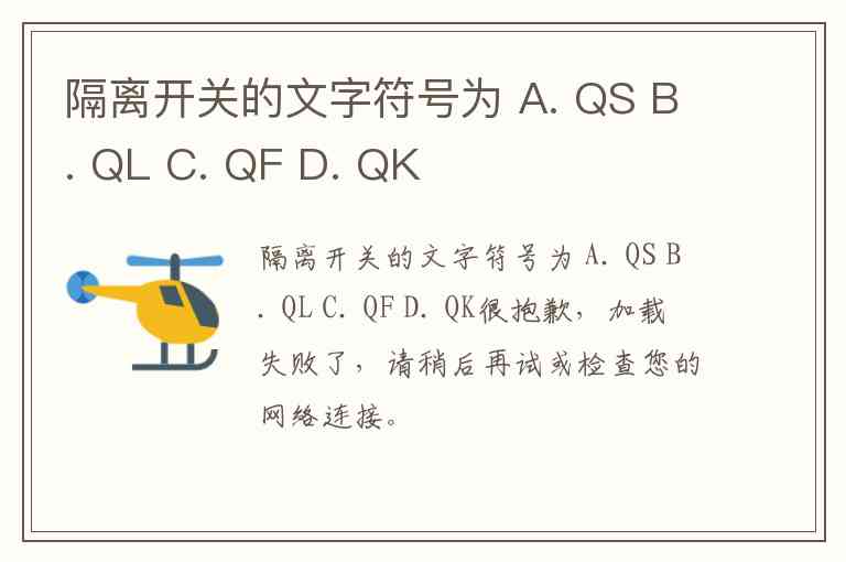 隔离开关的文字符号为 A. QS B. QL C. QF D. QK