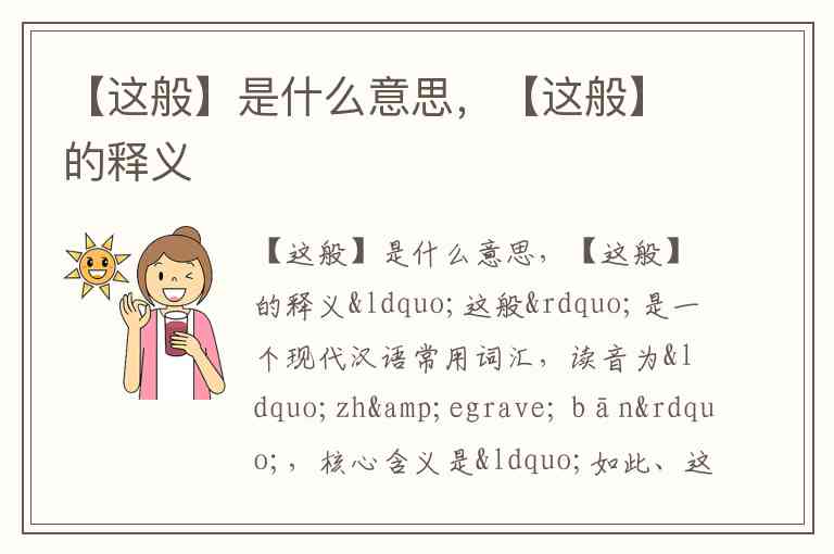 “这般”是一个现代汉语常用词汇,读音为“zhè bān”,核心含义是“如此、这样”,用于描述事物的性状、程度或方式,在语境中可增强表达的生动性和确定性。它与“这么”“这等”为近义词,但“这般”更具书面语色彩,常出现在文学作品或正式语境中。