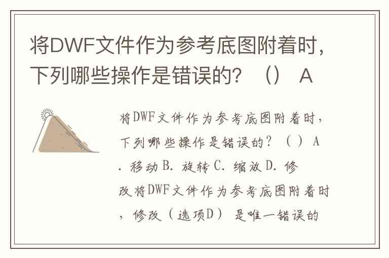 将DWF文件作为参考底图附着时,下列哪些操作是错误的?() A. 移动 B. 旋转 C. 缩放 D. 修改