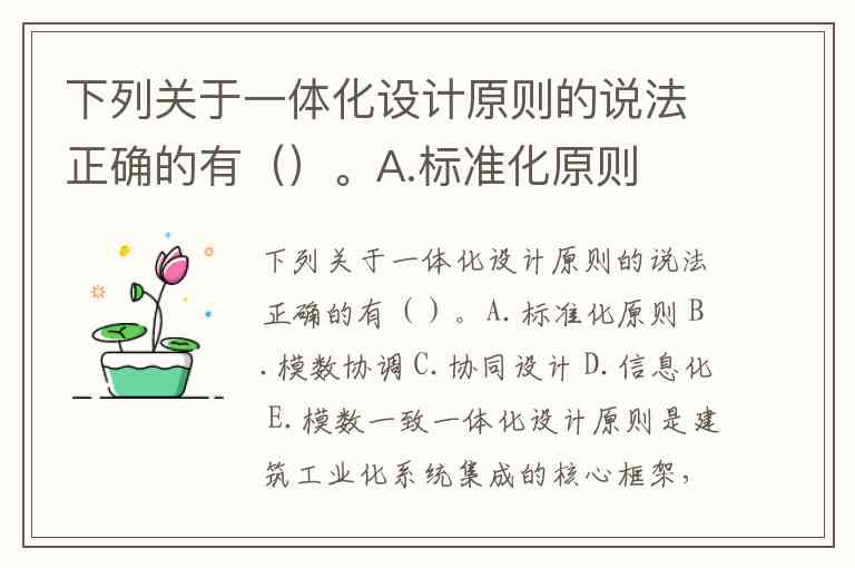 下列关于一体化设计原则的说法正确的有()。A.标准化原则 B.模数协调 C.协同设计 D.信息化 E.模数一致